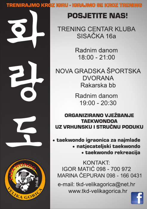 Posebna ponuda !!! Objavljeno: 07.02.2018. u 20h Pregledano: 608 puta Taekwondo klub Velika Gorica svim novim članovima poklanja mjesec dana besplatnog treniranja !!! posebna ponuda treniranje besplatno Povratak na obavijesti